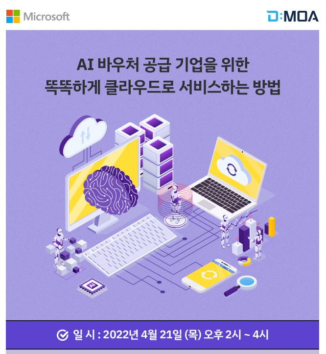 정부에서 주관하는 'AI 바우처 지원사업'의 참여기업 담당자를 대상으로 진행되는 이번 세미나는 AI 바우처 성공 사례를 기반으로 공급처의 솔루션을 효율적으로 제공하는 방법과 디모아의 클라우드 비즈니스 노하우를 소개할 예정이다.