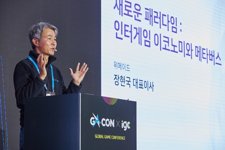 【 청년일보 】 장현국 위메이드 대표는 18일 'G-CON X IGC(국제 게임 컨퍼런스)'에서 '새로운 패러다임: 인터게임 이코노미와 메타버스'를 주제로 기조연설을 진행했다.