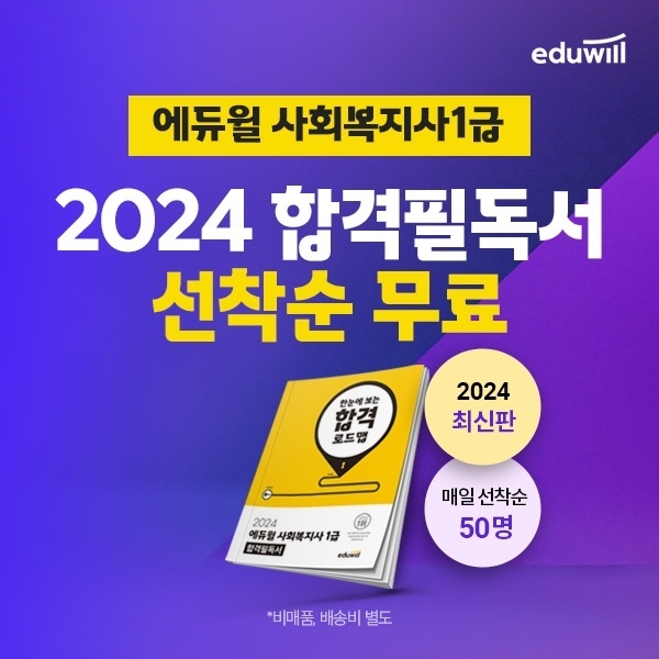 【 청년일보 】 종합교육기업 에듀윌은 2024 사회복지사1급 시험을 대비하는 수험생을 위해 선착순에 한해 '합격필독서'를 무료로 배포한다고 15일 밝혔다.