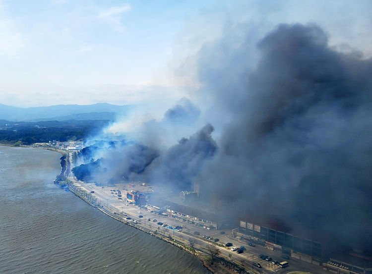 【 청년일보 】강원 강릉 산불이 강풍 속에 해안가 방향으로 번지고 있다.