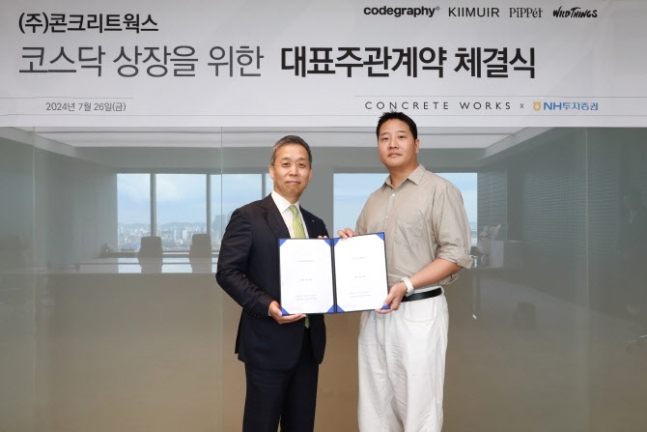 【 청년일보 】 NH투자증권은 콘크리트웍스와 코스닥 상장 추진을 위한 기업공개(IPO) 대표 주관계약을 체결했다고 29일 밝혔다.