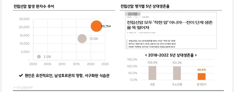 이날 학회는 전립선암은 올해 암 발생 예측통계에서 남성 암 1위를 차지하는 한편 최근 20년간(1999∼2021년) 사망률은 4배 가량 늘어나는 등 백혈병보다 높은 사망률을 보이고 있다고 설명했다.