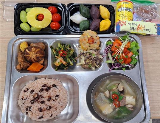 메뉴는 소화·저작 능력이 약한 어르신도 편하게 드실 수 있는 소고기토란탕, 가자미 미역국, 소불고기, 송편, 약과 등으로 구성했다.