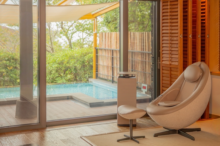 이번 공간은 기존과 달리 '코웨이 X 풀빌라 스위트' 제휴 객실로 운영되며, 객실 내에는 비렉스 매트리스와 안마의자, 공기청정기 등 다양한 코웨이 제품이 함께 비치돼 있는 점이 특징이다.