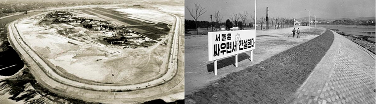 상습적으로 침수되던 여의도(당시 땅콩밭과 모래톱)는 1968년 한강 개발 계획에 따라 높이 16m에 달하는 윤중제(제방)를 쌓아 홍수를 막으면서 대규모 택지로 변모했다.
