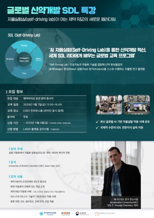 표준희 AI신약연구원 원장은 “이번 특강은 세계 SDL 연구를 선도하는 전문가와 국내 산업계가 직접 교류할 수 있는 소중한 기회”라고 강조했다.