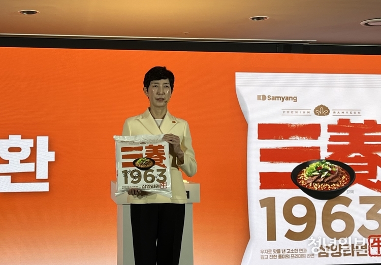【 청년일보 】 삼양식품은 3일 서울 중구 보코서울명동 호텔에서 신제품 '삼양1963' 출시 발표회를 갖고, 60여년 전 출시된 삼양라면의 맛을 현대적으로 재해석한 차세대 라면을 공개했다.