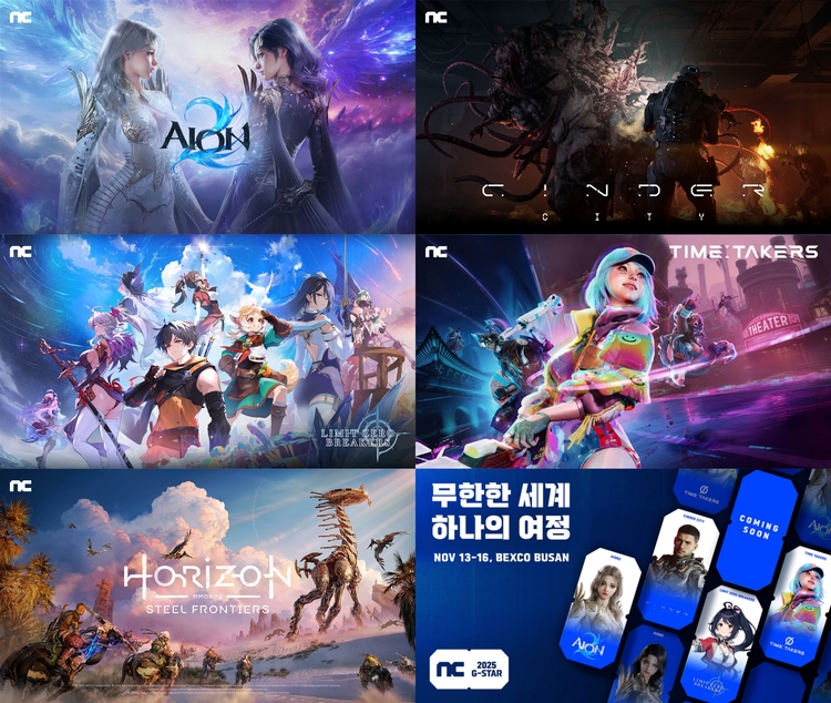 엔씨(NC)는 오프닝 세션을 통해 출품작 5종에 대한 발표도 진행했다. ▲아이온2(AION2) ▲신더시티(CINDER CITY) ▲호라이즌 스틸 프론티어스(Horizon Steel Frontiers) ▲리밋 제로 브레이커스(LIMIT ZERO BREAKERS) ▲타임 테이커즈(TIME TAKERS)의 각 IP(지식재산권) 총괄 프로듀서가 등장해 게임을 소개했다.