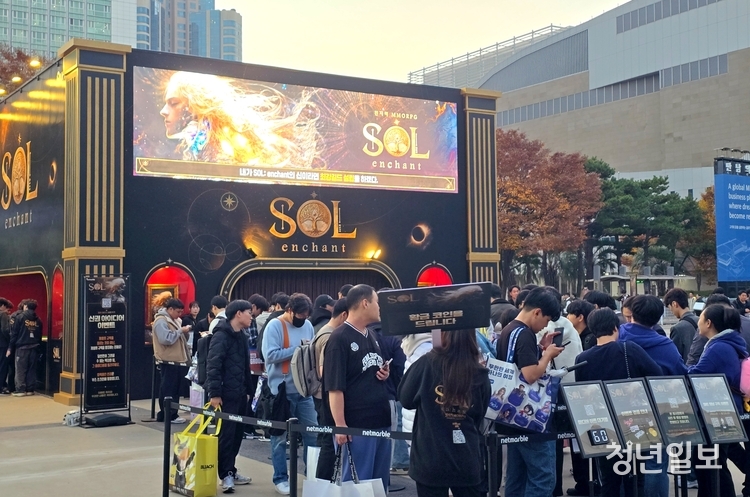 한편, 야외부스에서는 'SOL: enchant(솔: 인챈트)'의 핵심 콘텐츠 신권(神權)을 체험할 수 있는 이벤트가 인기리에 진행 중이다. 인터랙티브 미디어 아트 공간에서는 신권 콘셉트를 간접 체험할 수 있으며, SNS 채널 구독 이벤트, 신권 아이디어 공모전 등을 함께 진행해 풍성한 경품을 지급한다.