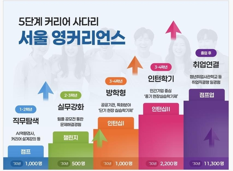 대학교 1∼2학년생, 비진학 청년을 주 대상으로 하는 1단계(캠프)는 본격적인 경력 형성에 앞서 인공지능(AI) 역량검사, 현직자 멘토링 등을 통해 자신에게 맞는 진로와 직무를 탐색하는 과정으로 준비된다.