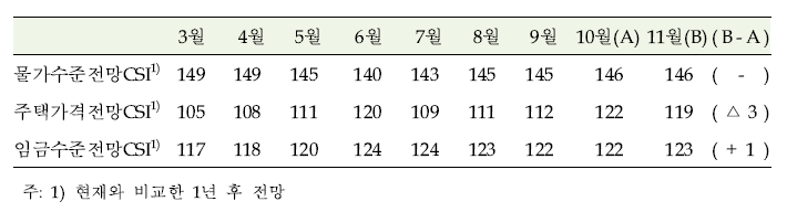 주택가격전망CSI는 현재와 비교한 1년 후의 주택가격 전망을 나타내는 지수다.