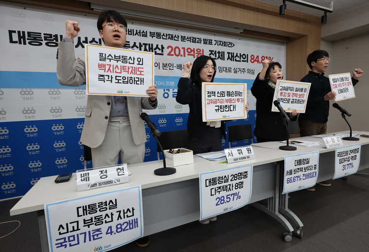 경제정의실천연합(경실련)은 10일 오전 서울 종로구 경실련 강당에서 기자회견을 열고 ‘대통령비서실 부동산재산 분석결과’를 발표했다.