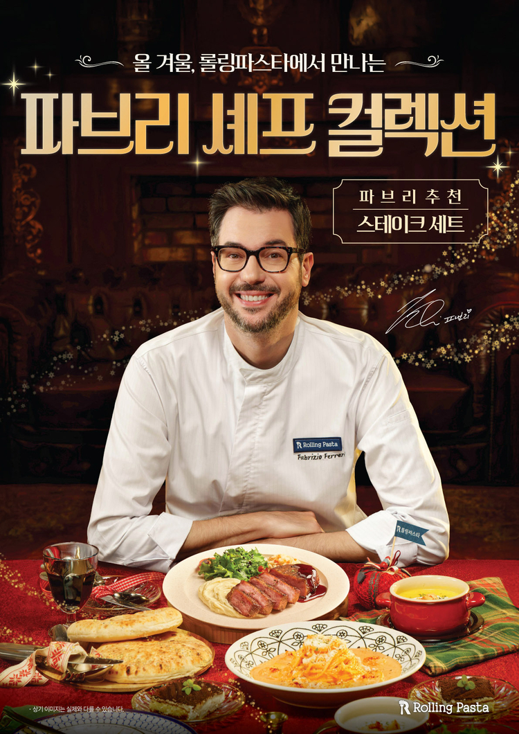 【 청년일보 】 더본코리아의 파스타 전문 브랜드 롤링파스타는 미슐랭 스타 셰프 파브리치오 페라리(이하 '파브리')와 함께 구성한 연말 시즌 한정 '스테이크 세트 2종'을 출시한다고 17일 밝혔다.