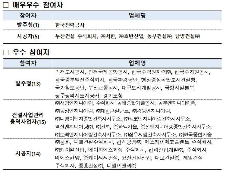 이번 평가 결과는 발주청인 공공기관의 경우 경영평가에 반영되며, 시공자는 시공능력평가액 산정 시 신인도 평가 항목으로 활용된다. 최근 3년간 평가 결과에 따라 '매우 우수'는 가점 2%를, '매우 미흡'은 감점 4%를 적용받는다.