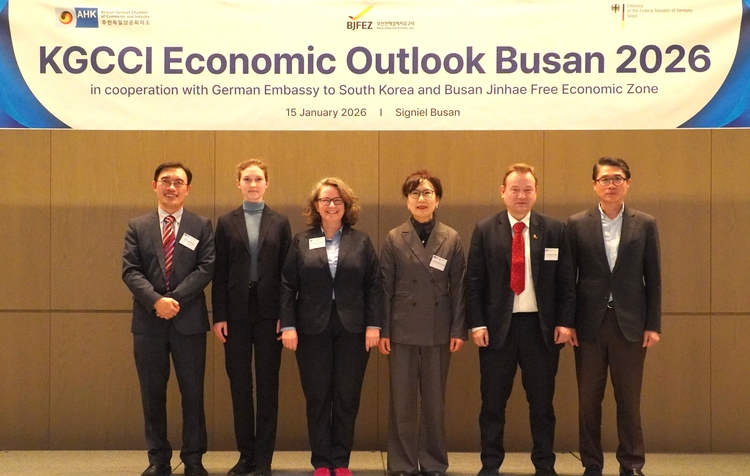 【 청년일보 】 주한독일상공회의소(KGCCI)는 부산진해경제자유구역청(BJFEZ)과 공동으로 지난 15일 '2026년 경제 전망' 행사를 시그니엘 부산에서 개최했다고 16일 밝혔다.