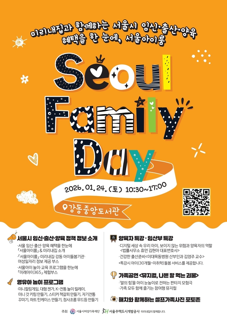 박정숙 서울시여성가족재단 대표이사는 “서울아이(i)룸은 임신·출산·양육 정보를 찾을 때 가장 먼저 떠올릴 수 있는 시민 맞춤형 안내 창구”라며, “서울패밀리데이를 계기로 더 많은 시민이 다양한 가족 지원 혜택을 생활 속에서 자연스럽게 체감할 수 있기를 바란다”고 말했다.