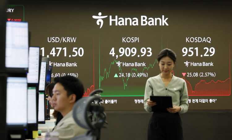 22일 한국거래소에 따르면 이날 코스피는 전장 대비 77.13포인트(1.57%) 상승한 4,987.06에 개장했다. 지수는 개장 직후 5000선을 넘어섰다.
