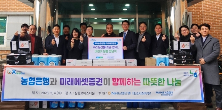 5일 NH농협은행에 따르면 자금시장부문 임직원들은 지난 4일 서울 마포구에 위치한 아동양육시설 ‘삼동보이스타운’을 방문해 미래에셋증권 임직원들과 함께 쌀과 과일 등 우리 농산물과 어린이 용품을 전달했다.