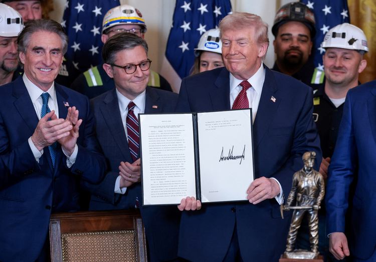 아울러 에너지부에 특정 주(웨스트버지니아, 오하이오, 노스캐롤라이나, 켄터키)의 석탄 발전소에 자금을 지원하고 가동을 유지하도록 지시했으며, 국방부에도 석탄 발전소와 새로운 전력 구매 계약을 체결하도록 하는 행정명령에 서명했다고 말했다.
