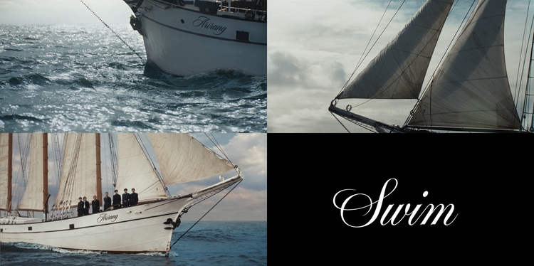 공개된 영상 속 일곱 멤버는 푸른 바다를 가르는 거대한 흰 범선 위에 올라 웅장한 분위기를 자아냈다.