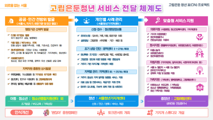 또한 고립 청년이 40세 이후 중장년층으로 진입해도 지원이 끊기지 않도록 서울잇다플레이스 내에 전담 클리닉을 설치해 공백 없는 지원 체계를 가동한다.
