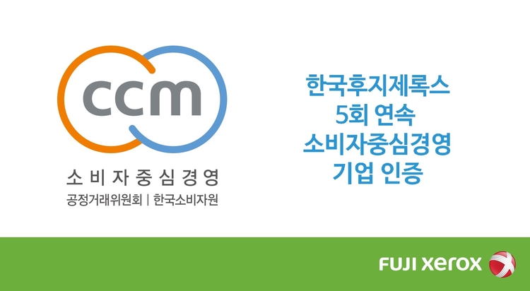【 청년일보 】 한국후지제록스가 공정거래위원회가 인증하고 한국소비자원이 운영하는 '소비자중심경영(CCM)' 기업에 5회 연속 선정됐다.