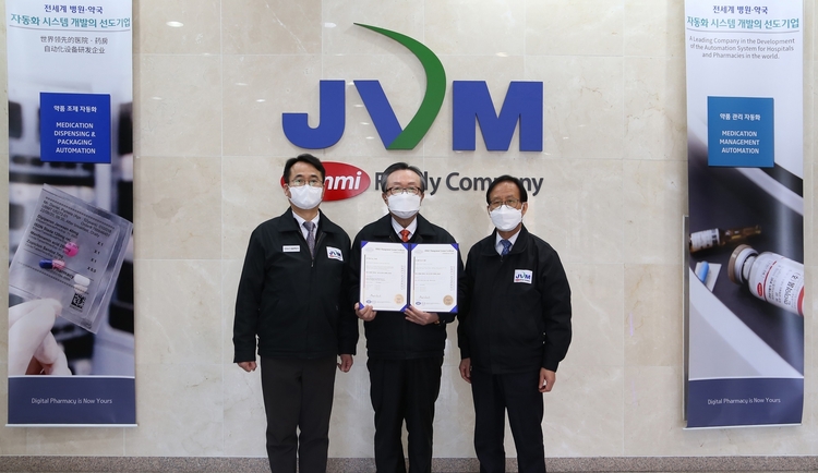 의약품 자동조제 및 자동화 전문기업 제이브이엠은 15일 ISO 45001 공식 인증기관인 저먼서트(GERMAN CERT)로부터 산업재해 대응체계를 안정적으로 확립해 안전보건시스템을 확고히 구축했다는 평가를 받아 최종 인증을 받았다고 밝혔다.