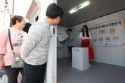지난5월부산부산진구부산시민공원남1문광장에서시민들이부산시선관위가설치한'무관심탈출박스'를체험하고있다.<출처=뉴스1>6·13지방선거를3주일앞두고20대와30대등청년유권자10명8명은꼭투표할의향이있는것으로나타났다.지난2014년때10명중6.4명에비해눈에띄게늘어난것이다. 한국갤럽이지난23~24일전국성인남녀10003명을대상으로투표의향을물은결과응답자10명중8명(82%)은'꼭투표할것'이라고답한것으로나타났다고25일밝혔다. 갤럽에따르면2014년지방선거일주일전조사에서는'꼭투표할것'이란응답이74%에그쳤으나이번에는82%로4년전보다8%p증가한것이다. 이와관련갤럽은20대와30대의청년층이적극적인투표의향을보였기때문이라고설명했다. 갤럽에따르면20대는2014년62%에서2018년72%,30대는67%에서84%,40대는72%에서87%로증가했다. 또50대는79%에서77%,60대이상은86%에서87%로4년전과비슷해세대간격차가줄은것으로분석됐다. 갤럽은"대체로인식이나태도의변화는실제행동변화에선행하는경향이있으며,세대간투표의향격차의감소가이번선거에서실제투표행동변화로이어질것인지,좀더시간이흐른다음에나타날것인지주목된다"며"올해상반기