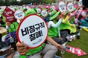 <출처=뉴스1>비정규직청년의시간당임금이정규직수준의76.5%수준인것으로나타났다.또대졸정규직의경우차이가더커져비정규직은정규직의66%수준에머물렀다. 25일고용노동부가발표한2017년6월기준'고용형태별근로실태조사결과'에따르면청년층(20~39세)정규직의시간당임금은1만6208이다.반면비정규직은시간단1만2434원으로정규직의76%수준이다. 최종학력에따라서는격차가더벌어진다.대졸정규직은2만2402원인데비해비정규직은1만4811원으로66%수준에머물러있다. <제공=고용노동부>근로자의임금격차는정규직·비정규직이라는고용형태보다여전히사업체규모에따라임금격차가더큰것으로나타났다. 300인이상사업체의비정규직노동자시간당임금은1만9996원으로300인미만사업체의1만6681원보다3315원높다. 300인이상사업체의정규직노동자시간당임금을기준(100%)으로비교하면,2012년부터지난5년동안300인이상사업체의비정규직노동자시간당임금수준은63.1%에서65.1%로2%p증가했다. <제공=고용노동부>반면,300인미만사업체의정규직노동자시간당임금수준은56.4%에서54.3%로2.1%p감소했다. 지난5년동안300인미만사업체의정규직노동자시간당임금수준이300인이상사업체의비정규