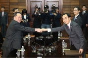29일판문점북측통일각에서열린남북고위급회담에참석한조명균통일부장관과북측대표인리선권조평통위원장이악수하고있다.<제공=통일부>문재인대통령과김정은북한노동당위원장의정상회담날짜가4월27일로확정됐다. 남북은29일판문점북측통일각에서‘2018남북정상회담’준비를위한고위급회담을갖고이같은내용의공동보도문을채택했다고통일부가밝혔다. 남북은이달초문대통령의대북특별사절단방북을통해4월말판문점남측평화의집에서정상회담을개최하기로합의한바있는데,이번에구체적인날짜를확정한것이다. 남북은정상회담을준비하기위해내달4일판문점남측지역에서의전,경호,보도관련실무회담을개최키로했다.통신실무회담의날짜와장소는차후확정하기로했다. 남북은기타제기되는실무적문제들은문서교환방식으로계속협의하기로했다. 이날회담은우리측에서수석대표인조명균통일부장관과천해성차관,윤영찬청와대국민소통수석이참석했고,북측에서는리선권조국평화통일위원회(조평통)위원장,전종수조평통부위원장,김명일조평통부장이나왔다.