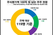 【 청년일보 】 지난해 한국거래소에 신규 상장한 상장사 중 개인주주 주식평가액이 1조원 넘는 재벌급 주식 거부가 탄생했고, 주식재산 1000억 클럽(1천억원~1조 미만)에 가입한 슈퍼부자도 19명이나 나왔다. 기업분석전문 한국CXO연구소는 '2025년 신규 상장사 대상 주식평가액 100억 넘는 주식부자 현황 조사'에서 이같은 결과가 도출됐다고 19일 밝혔다. 조사 대상은 지난해 한국거래소에 신규 상장한 121개 상장사의 개인주주이다. 조사 결과에 따르면 지난해 신규 상장한 121개 주식종목 중 이달 16일 종가 기준으로 주식평가액이 100억원 넘는 주식부자는 119명인 것으로 집계됐다. 주식평가액으로 구분해보면 1조원 넘는 1명을 포함해 1천억원 이상은 모두 19명이었다. 이어 ▲500억원~1천억원 미만 19명 ▲300억~500억 14명 ▲100억~300억 67명으로 조사됐다. 10억~100억원 사이 주식가치를 보인 주주도 101명으로 파악됐다. 이달 16일 기준으로 주식재산이 1조원 넘는 주식 갑부에는 제약·바이오 업체 중 한 곳인 '에임드바이오' 남도현 최대주주이자 최고기술책임자(CTO)인 것으로 확인됐다. 남도현 CTO는 에임드바이오 종목의 주식을 2천