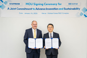 【 청년일보 】 한국콜마는 지난 16일 서울 서초구 소재 종합기술원에서 미국 최대 화학기업 이스트만(Eastman)과 친환경 메이크업 소재 개발을 위한 업무협약(MOU)을 체결했다고 20일 밝혔다. 이날 협약식에는 한상근 한국콜마 기술연구원 부사장과 트래비스 스미스(Travis Smith) 이스트만 수석부사장(EVP) 등 관계자들이 참석했다. 이스트만은 첨단 소재와 기능성 첨가제 등 다양한 산업 분야를 아우르는 글로벌 대표 석유화학기업으로, 1920년 미국에서 설립됐다. 폐플라스틱을 분자 단위로 분해해 동일한 품질의 원료로 재활용하는 기술 등 지속가능 소재 분야에서 세계 최고 수준의 기술력을 갖춘 기업으로 평가받는다. 이번 협약으로 양사는 색조 화장품에 사용되는 미세플라스틱을 대체할 친환경 재생 소재를 공동 개발한다. 색조 화장품은 발림성과 밀착력, 지속력 구현을 위해 이러한 합성 소재가 사용돼왔다. 양사는 나무에서 추출되는 셀룰로오스와 자연 분해가 가능한 폴리머를 각각 차세대 천연 재생 소재로 개발한다는 목표다. 한국콜마는 이번 협업으로 확보한 친환경 소재를 제품에 적용해 글로벌 색조 시장 경쟁력을 강화할 계획이다. 특히 환경 규제가 강화되고 있는 북미와
