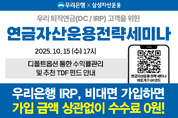 【 청년일보 】 우리은행(은행장 정진완)이 오는 15일 오후 5시에 유튜브에서 퇴직연금 고객을 위한 ‘퇴직연금 운용관리 및 투자전략’세미나를 생방송으로 진행한다고 13일 밝혔다. 이번 세미나에는 삼성자산운용 두지영 연금컨설팅 전문가가 출연해 ▲퇴직연금 운용관리 전략 ▲디폴트 옵션 수익률 관리 ▲시황 및 퇴직연금 상품(TDF) 제안 등 주요 투자전략을 제시할 예정이다. TDF(Target Date Fund)는 은퇴 시점에 맞춰 안전자산의 비중을 자동으로 조정해주는 생애 주기형 펀드를 말한다. 세미나 참여는 우리WON뱅킹 앱 ‘메뉴(三) ▷새소식 ▷퇴직연금(IRP/DC) '연금자산·운용전략' 비대면 라이브 세미나 안내’공지를 클릭하거나 은행 홈페이지 홍보센터에 게시된 QR코드를 통해 접속할 수 있다. 유튜브 생방송 중 전문가와의 실시간 질의응답이 준비되어 있으며, 세미나 이후 온라인 설문에 참여한 선착순 500명에게 스타벅스 쿠폰을 제공하는 이벤트도 마련됐다. 한편, 우리은행은 2021년 10월부터 시중은행 최초로 개인형 IRP를 비대면으로 가입할 경우 퇴직금뿐 아니라 개인부담금에 대해서도 운용·자산관리 수수료를 전액 면제하고 있다. 또한, 고객 투자 니즈에 맞