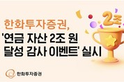 【 청년일보 】 한화투자증권은 15일 연금자산 2조원 달성을 기념해 유튜브 영상에 댓글 작성 시 커피 쿠폰 등을 제공하는 이벤트를 진행한다고 밝혔다. 이벤트는 한화투자증권 연금저축 또는 퇴직연금 고객을 대상으로 다음 달 13일까지 진행한다. 이벤트 참여를 원하는 경우 한화투자증권 공식 유튜브 채널에 업로드된 연금자산 2조원 달성 기념 영상에 축하 댓글을 단 후 '한화투자증권 MTS(모바일트레이딩시스템)' 또는 홈페이지 이벤트 페이지에 유튜브 아이디를 기재하면 된다. 댓글을 단 선착순 1천명에게 스타벅스 커피 쿠폰을 지급하며, 추첨을 통해 5명에게 블루투스 이어폰을 증정한다. 【 청년일보=신정아 기자 】