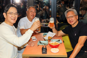 【 청년일보 】 엔비디아 젠슨 황 최고경영자(CEO)가 30일 저녁 이재용 삼성전자 회장, 정의선 현대차그룹 회장과 서울 강남구 삼성동 소재 치킨 프랜차이즈 '깐부치킨'에서 만찬을 갖는다. 황 CEO의 방한은 15년 만이다. 이날 오후 7시 30분께 회동 장소에 도착한 세 사람은 넥타이를 매지 않는 캐주얼 차림으로 등장했으며, 주변에는 이들을 보기 위해 취재진과 시민들이 몰리며 인도가 붐볐다. 회동 장소로 선택된 '깐부'는 '친한 친구'를 의미하는 속어로, 넷플릭스 드라마 '오징어게임'으로 널리 알려졌다. 업계에서는 이번 만찬이 삼성전자·현대차와 엔비디아 간 협력 강화 의지를 상징적으로 드러낸 것이라는 관측이 나온다. 특히 삼성전자는 AI 시대 핵심인 고대역폭메모리(HBM) 분야에서 엔비디아와 협업 필요성이 커진 상황이다. 현대차 역시 자율주행·로보틱스 분야에서 엔비디아 기술 협력이 주목받는다. 삼성·현대차·엔비디아 3사의 수장이 한자리에 모인 만큼 국내 산업계 안팎의 관심이 집중되고 있다. 【 청년일보=조성현 기자 】