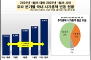 【 청년일보 】 최근 1년 새 국내 주식시장에서 시가총액(시총)은 80% 가까이 증가하며 가파른 상승세를 보였다. 특히 지난해 및 올해 연초(각 년도 1월 2일) 대비 국내 주식시장 전체 시총은 1천700조원 이상 늘었는데, '반도체 대장주'인 삼성전자와 SK하이닉스 두 종목에서만 시총 외형이 800조원 이상 증가하며 시장 전반의 상승 흐름을 이끈 견인차 역할을 했다. 기업분석전문 한국CXO연구소는 이같은 내용을 골자로 한 '2025년 1월 초 대비 2026년 1월 초 국내 주식시장 시가총액 변동 현황 분석' 결과를 14일 발표했다. 조사 결과에 따르면 전년 초 기준 국내 시총 규모는 2천254조원 수준이었는데, 올해 초에는 3천972조원으로 1년 새 시총 체격은 1천718조원 이상 커졌다. 시총 증가율만 해도 76.2% 수준을 보였다. 시총 외형이 1조원 넘는 '시총 1조 클럽'에 가입한 주식종목 숫자도 최근 1년 새 88곳 늘며 300곳을 돌파했다. 전년 초만 해도 시총 1조 클럽에는 230곳 정도였다. 우선주를 제외하고 전년 초 대비 올해 초 기준으로 시총 증가액이 1조원 넘게 상승한 종목은 144곳으로 나타났다. 이 중에서도 22곳은 시총 외형이 10