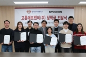 【 청년일보 】 교촌치킨을 운영하는 교촌에프앤비는 지난 8일 서울 회기동에 위치한 경희사이버대학교에서 이주배경 성인학습자를 위한 장학금 전달식을 열고, 배움의 기회를 응원했다고 12일 밝혔다. 이번 전달식은 교촌의 '이주배경 지원사업'을 통해 기탁된 장학금 2천만원 가운데 1천만원을 경희사이버대학교에 재학중인 이주배경 성인학습자에게 전달하는 자리로, 산학 협력을 통한 상생의 약속을 실천하기 위해 마련됐다. 해당 장학 사업은 지난해 6월 교촌에프앤비와 경희사이버대학교, (사)이주민센터 친구가 체결한 산학 협력 업무협약(MOU)의 연장선이다. 세 기관은 다문화가정을 포함한 이주배경 성인학습자들이 교육을 통해 한국 사회에 안정적으로 정착하고, 역량을 발휘할 수 있도록 협력해왔다. 이날 전달식에는 임형욱 교촌에프앤비 커뮤니케이션전략실장과 김선엽 경희사이버대학교 부총장 등 교촌에프앤비와 학교 주요 관계자들이 참석했으며, 장학생 대표 7명에게 장학금을 수여하고 학업 성취를 축하했다. 이번 장학금 수혜 대상은 2025학년도 2학기 경희사이버대학교에 재학 중인 이주배경 성인학습자(귀화자, 결혼이민자, 외국인 근로자 등) 중 정규학기 1학기 이상 이수하고 소정의 성적 기준