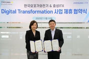【 청년일보 】 효성ITX는 지난 13일 한국요꼬가와전기와 디지털 트랜스포메이션(DX) 사업 협력을 위한 업무협약(MOU)을 체결했다고 14일 밝혔다. 이번 협약은 효성ITX의 IT 기술과 한국요꼬가와전기의 제조 운영기술(OT)을 결합해 스마트팩토리 분야에서 시너지를 창출하기 위해 추진됐다. 요꼬가와전기는 1915년 일본 도쿄에서 설립돼 에너지·화학·소재 등 다양한 산업 분야에 측정·제어 솔루션을 제공하는 글로벌 공정자동화 전문기업이다. 효성ITX는 효성중공업 등 그룹 내 계열사의 스마트팩토리를 구축하는 등 스마트팩토리 분야의 기술력을 강화해 왔다. 자체 개발한 데이터 분석 솔루션 '익스트림VAS(xtrmVAS)'를 통해 AI·빅데이터 기반 공정 데이터 분석 역량을 키우고 있다. 양사는 향후 제조 공정 데이터를 활용해 데이터 기반 의사결정 체계를 고도화하는 등 사업 협력을 확대할 계획이다. 홍혜진 효성ITX 대표이사는 "이번 협약은 IT와 제조 운영기술을 융합해 제조 현장의 경쟁력을 높이기 위한 중요한 첫걸음"이라면서 "데이터 기반의 스마트팩토리 구축을 통해 고객사의 생산성과 효율을 한층 끌어올리겠다"고 말했다. 나카지마 코이치 한국요꼬가와전기 대표이사는 "