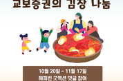 【 청년일보 】 교보증권은 온라인 기부 플랫폼 네이버 해피빈과 함께 ‘김장 나눔 캠페인’을 진행한다고 20일 밝혔다. 이번 캠페인은 ‘함께 담그는 김장 이야기’를 주제로, 균형 잡힌 식사가 필요한 아동·청소년의 건강한 성장을 지원하기 위해 마련됐다. 캠페인은 오는 11월 17일까지 해피빈 ‘굿액션’ 페이지를 통해 누구나 참여할 수 있다. 참여자가 응원 메시지를 남기면 댓글 3건당 김장김치 1포기가 적립되며, 누적된 수량만큼 임직원이 직접 김장 봉사에 참여한다. 완성된 김치는 사단법인 ‘해피피플’을 통해 영등포 지역아동센터합회, 상록보육원, 행복한집 등 28개 복지 기관에 전달될 예정이다. 이번 활동은 창립 76주년을 기념해 진행되는 한 달간의 전사 릴레이 봉사활동의 일환이다. 김장 나눔을 비롯해 ‘해피 쿠킹’, ‘따뜻한 밥상’, ‘사랑의 헌혈’ 등 다양한 프로그램이 이어진다. 부산·광주·대전 등 전국 주요 지점에서도 ▲소방관 간식 꾸러미 제작 ▲복지시설 환경 미화 ▲무료 급식 등 지역사회 맞춤형 봉사활동을 전개할 계획이다. 교보증권 관계자는 “창립의 의미를 임직원과 함께 되새기며 우리 사회의 지속 가능한 변화를 만들고자 이번 캠페인을 준비했다”며 “따뜻한 마