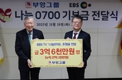 【 청년일보 】 이중근 부영그룹 회장이 올해도 EBS 대표 사회공헌 프로그램인 '나눔 0700'에 3억 6천만원을 기부하며 4년 연속 지원을 이어나간다. 이번 기부를 포함한 총 누적 기부액은 27억 2천만원이다. 18일 부영그룹에 따르면 이중근 회장은 이날 오후 부영그룹 사옥에서 김유열 EBS 사장 등 관계자들을 만나 3억 6천만원의 기부금을 전달했다. 전달된 기부금은 전액 사랑의열매 사회복지공동모금회를 통해 소년소녀 가장, 난치성 환우 등 도움이 시급한 취약계층에게 전달될 예정이다. 이중근 회장은 "우리의 나눔이 취약계층에게 실질적인 자립 기반을 제공하는 희망의 마중물이 되기를 바란다"면서 "이 손길이 나비효과로 번져 지속 가능한 사회로 발전할 수 있기를 기대한다"고 말했다. 김유열 EBS 사장은 "올해도 부영그룹의 기부를 통해 어려운 이웃들이 따뜻한 도움을 받을 수 있게 됐고, EBS는 전달받은 기금이 가장 절실한 곳에 투명하게 집행돼 우리 사회에 희망의 선순환을 창출하도록 최선을 다하겠다"고 밝혔다. 부영그룹의 후원은 장애인, 난치성 환우, 소년소녀가장, 다문화가정, 조손가정 등 약 160가구의 삶을 변화시켰다. 이들은 도움을 받아 건강을 되찾고, 새